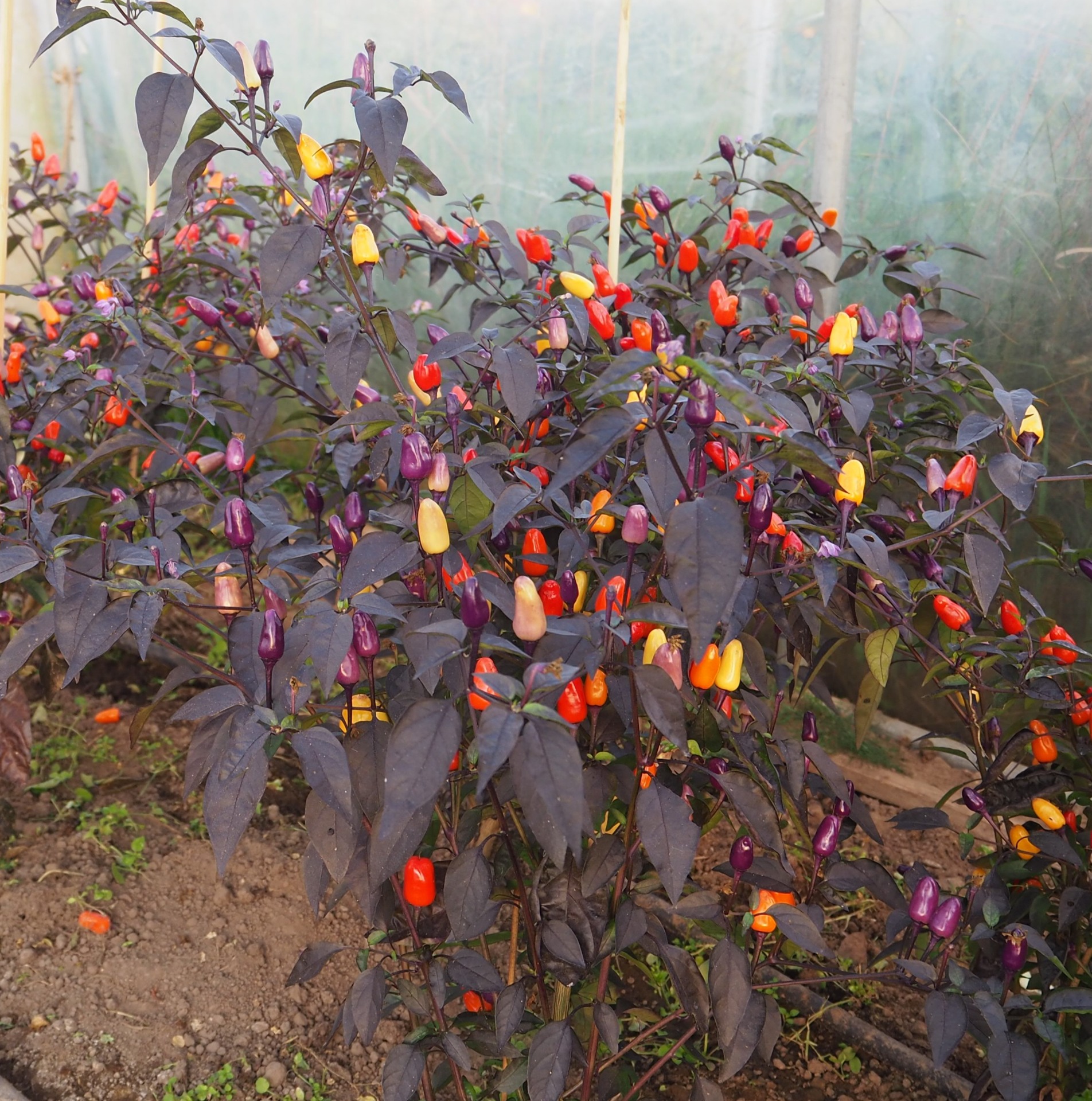 Lila luzi är en vacker chiliplanta (Capsicum Frutescens) med massor med små frukter. De mogna frukterna är röda, men innan de mognar skiftar de mellan olika färger. Frukterna är ganska starka, men små så en eller två chili räcker bra till en gryta. Plantan är kompakt och inte särskilt hög och fungerar även bra att odla i kruka.